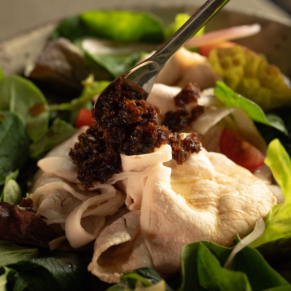 ごはんにのせるほか、焼肉やしゃぶしゃぶのタレとして、サラダのドレッシング代わり、雑炊や中華粥へのちょい足し、冷ややっこや牛丼のトッピングにもぴったり。